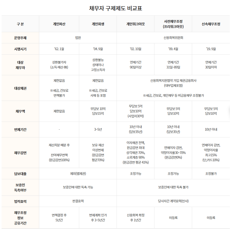 * 개인워크아웃보다 원금 감면이 폭이 매우 크고, 모든 채무가 포함된다는 장점이 있습니다.